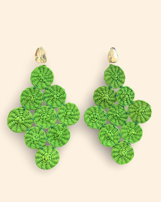 Estos aretes no son producidos en serie: cada uno se elabora completamente a mano por artesanas ecuatorianas que dominan técnicas ancestrales de tejido en paja toquilla. Por eso, no existen dos pares iguales, y las pequeñas variaciones o imperfecciones forman parte de su encanto.