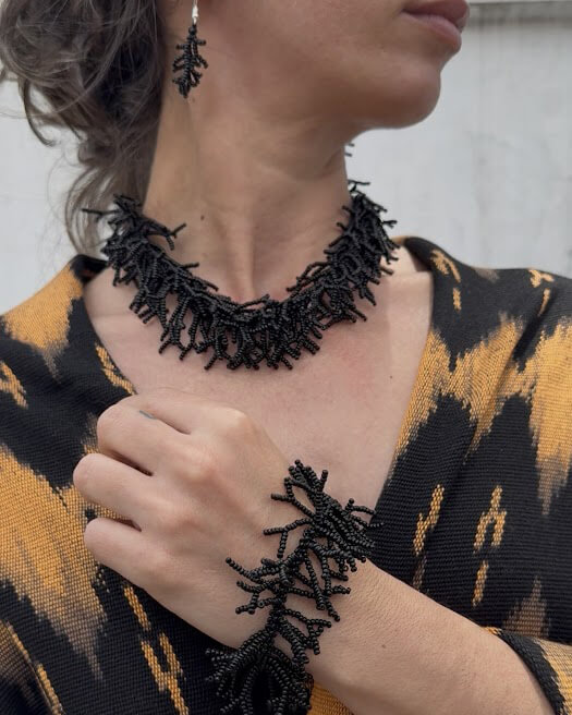 Nuestro Collar Saraguro Coral Negro está diseñado para convertirse en la parte principal de tu look. Es mucho más que un accesorio.